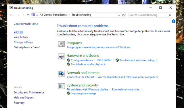 Trong Troubleshoot, bạn hãy nhìn sang bên trái của cửa sổ và nhấn vào lựa chọn “View All”.