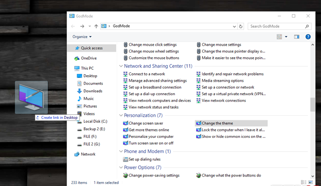 Bạn có thể nhanh chóng tùy chỉnh kéo-thả các tùy chọn này ra desktop hoặc bất cứ vị trí nào mình muốn để tiện truy cập sau.