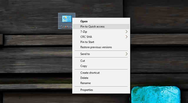 Ngoài ra, bạn còn có thể Pin thư mục God Mode vào Quick assess để có thể truy cập bất cứ lúc nào từ File Explorer.