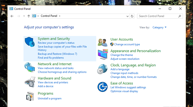 Trước tiên bạn mở Control Panel lên và lựa chọn nhóm “System and Security”.