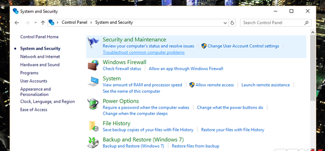 Tiếp tục nhấn vào “Troubleshoot Common Computer Problems” bên dưới nhóm lựa chọn Security and Maintenance.